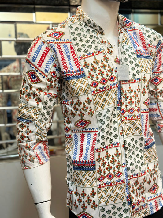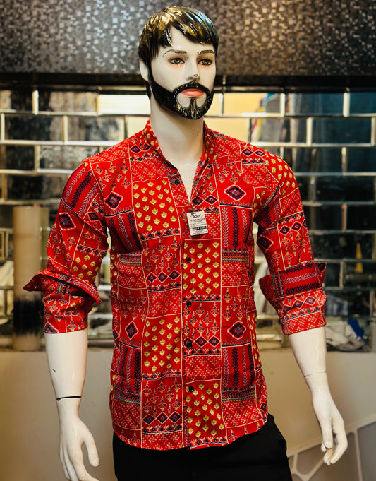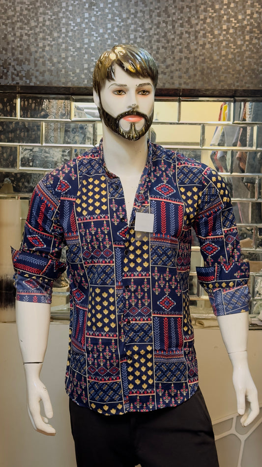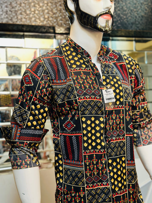 BLACK PRINTED SHIRT WITH CHINES COLLAR SLIM FIT