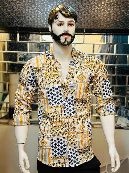 YELLOW FULL SHIRT WITH CHINES COLLAR SLIM FIT